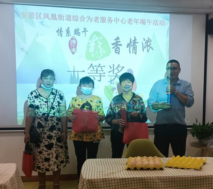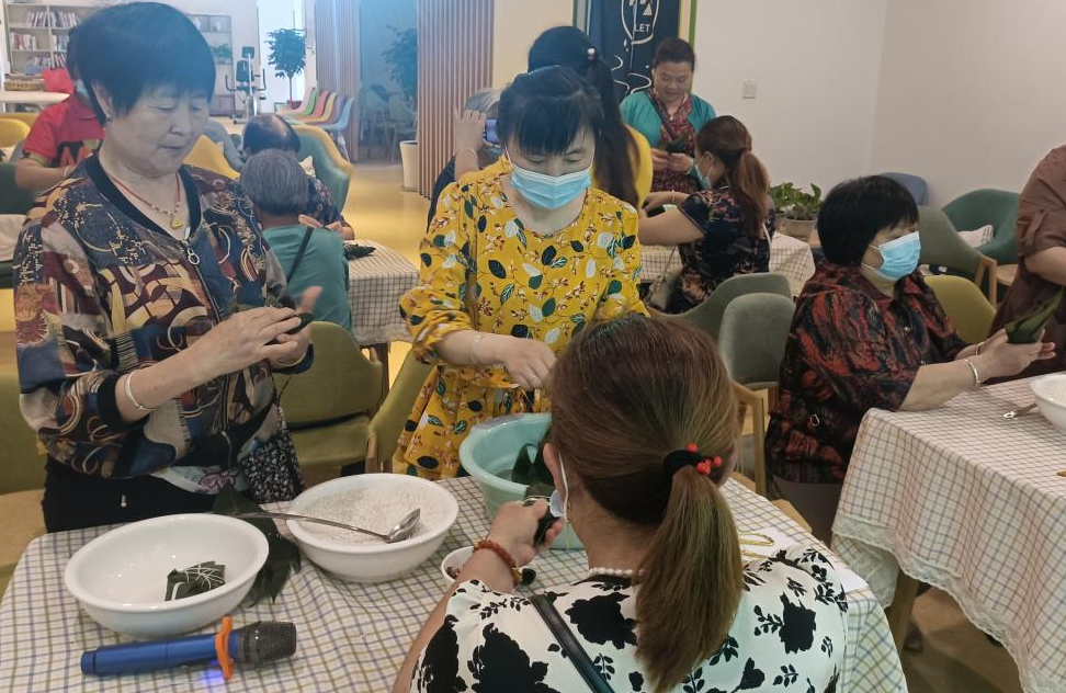 粽子制作完成后,由工作人员煮熟后分发给各位老人,品尝自己亲手的粽子,心里有着说不出的温暖。活动最后,活动参与者都拿到了节日的礼品,每个老人都是笑着离开活动现场。